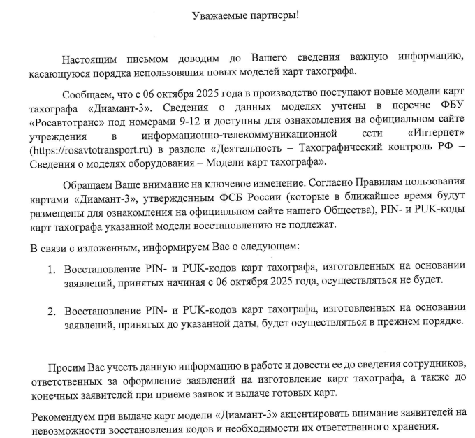 С 05.04.2025 года измененяется стоимость карт СКЗИ «Диамант-2» у производителя. В связи с этим, просим до указанного срока израсходовать переведенные ранее авансы за карты по старой цене и с 05.04.2025 года начать переводить авансы по новой стоимости.